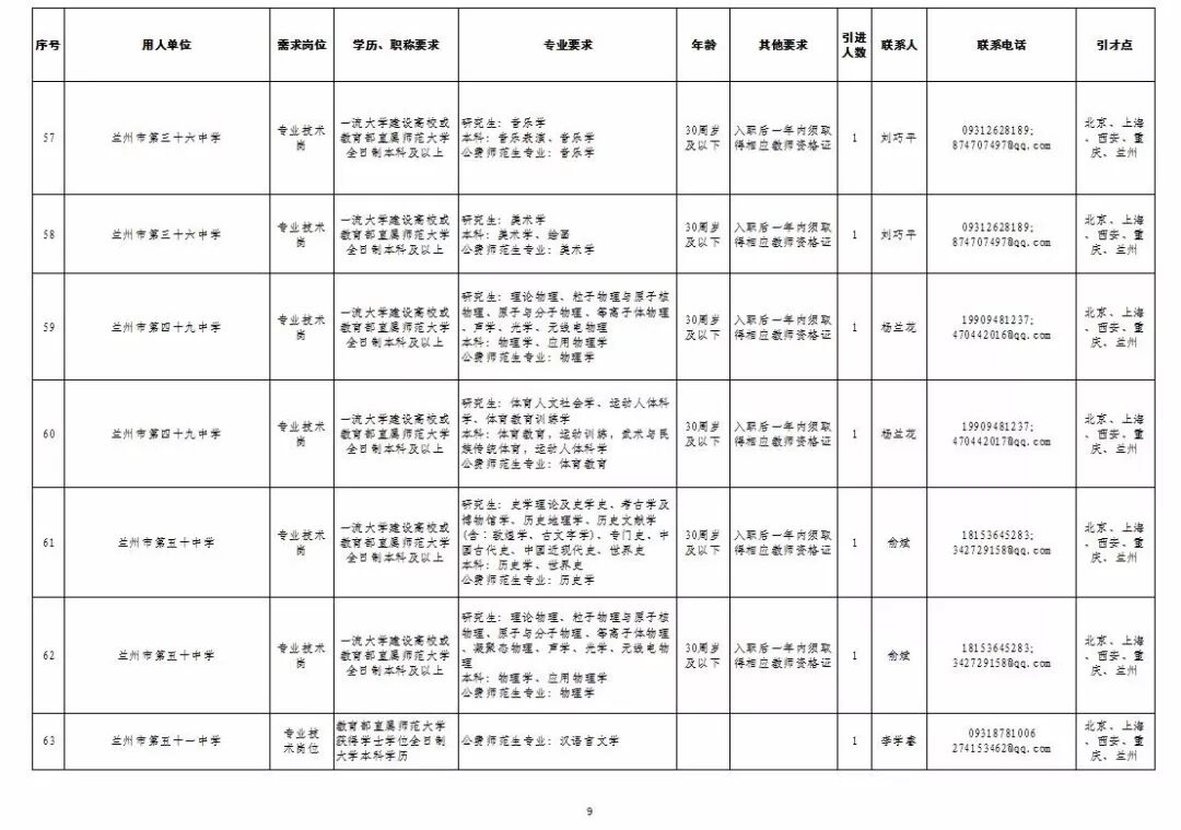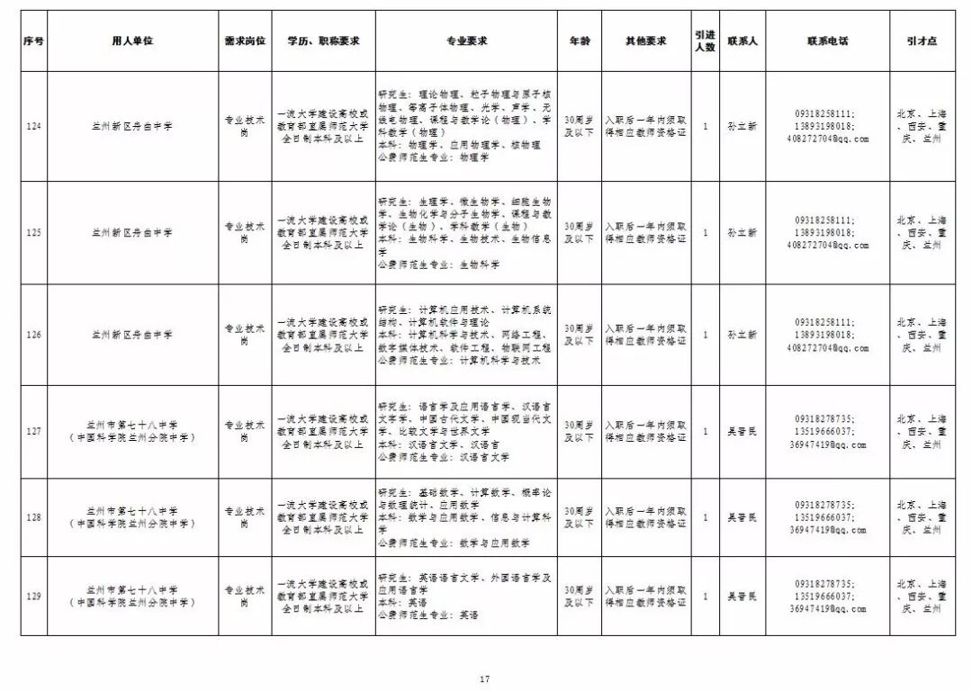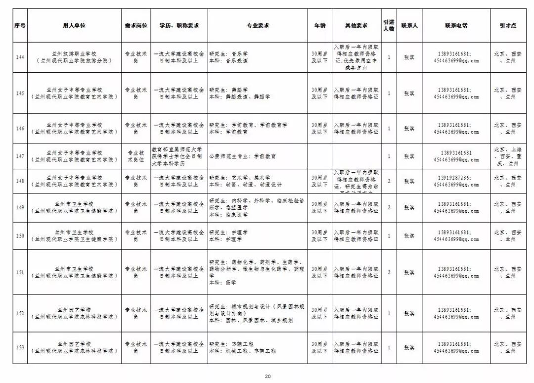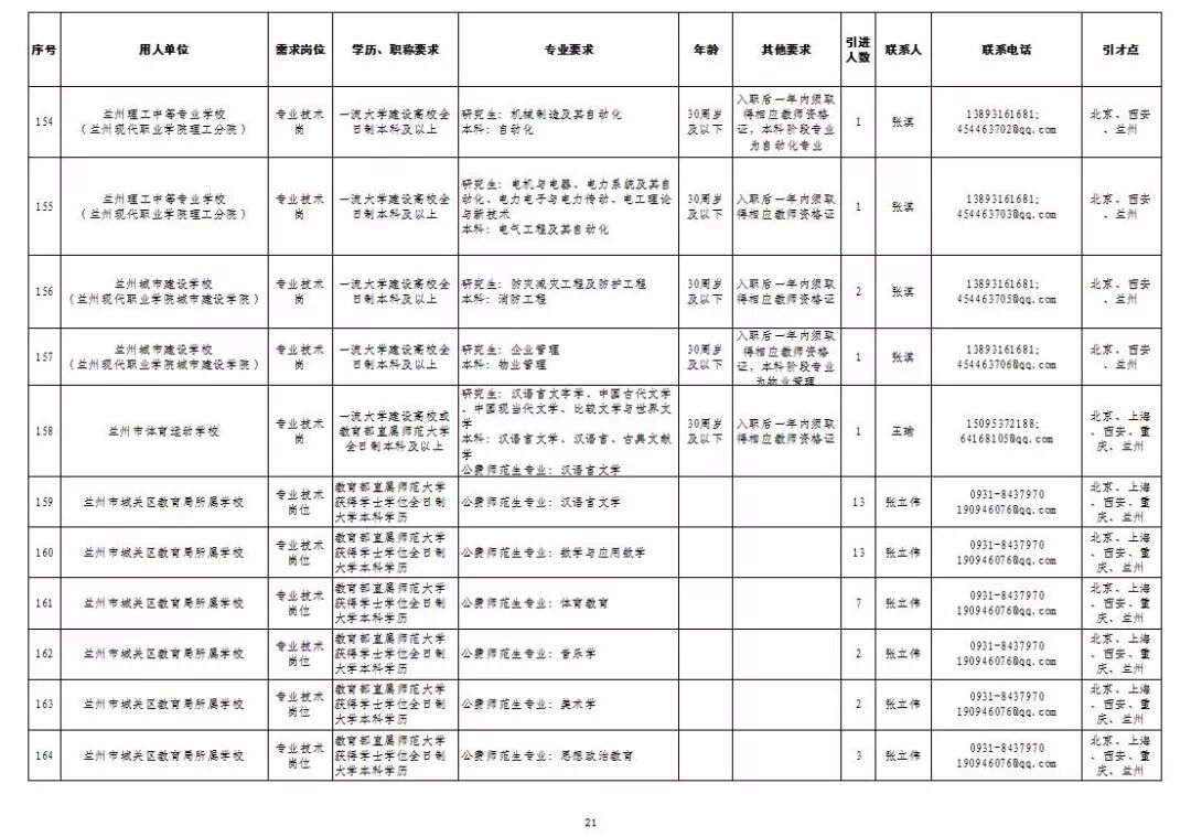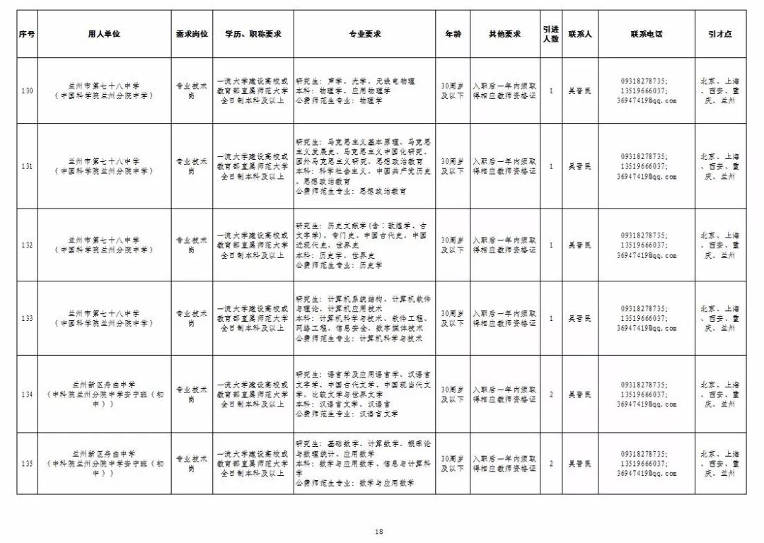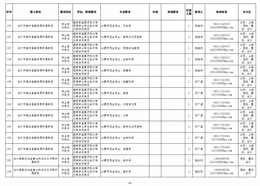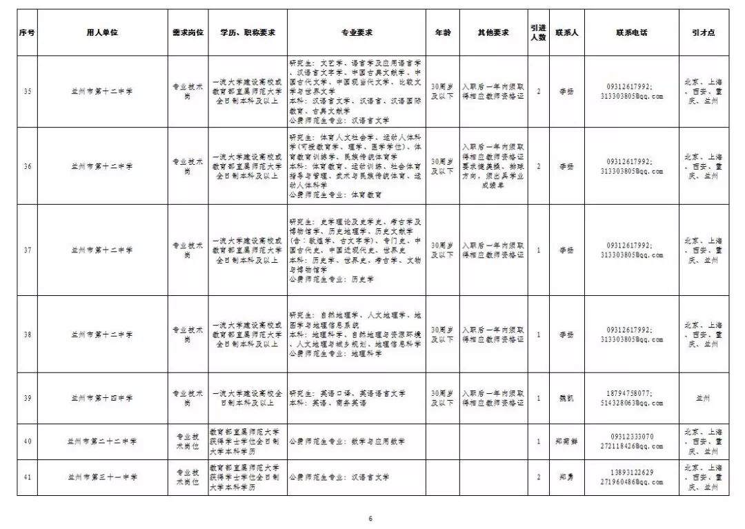 为深入实施人才强市战略,加强我市教育人才队伍建设,兰州市教育系统面向国家“一流大学建设高校”和教育部直属师范大学引进急需紧缺人才及公费师范生,具体岗位及条件见“2019年兰州市公开引进急需紧缺人才公告”和“兰州市教育系统公开招聘2020届公费师范生公告”,查询网址:兰州市人力资源和社会保障局官网(http://www.gslz.lss.gov.cn)和兰州市教育局官网(http://jyj.lanzhou.gov.cn/)。
